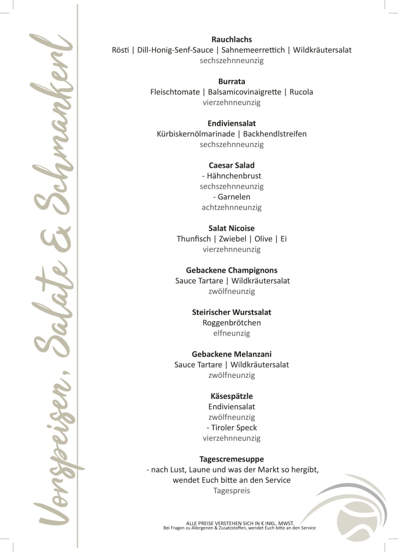 Neben den Klassikern, die wir alle lieben, gibt es jetzt auch spannende neue Gerichte. Regionale, alpenländische und mediterrane Produkte haben ihren festen Platz auf der „Die Ess(-Genuss)karte“.